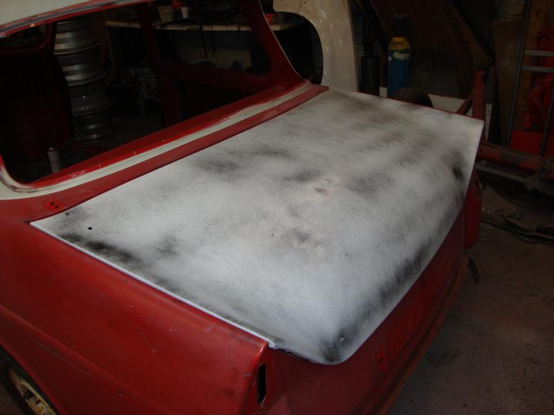 Hier is mijn rode vriendje geparkeerd bij de plaatwerker.